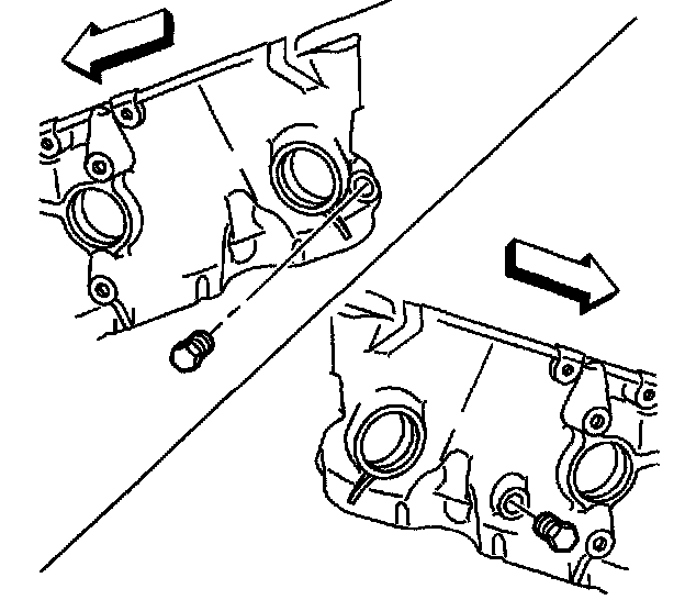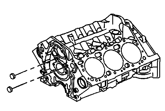 2. Apply sealant GM P/N 12346004 (Canadian P/N 10953480) or equivalent, to the outside diameter of the NEW front engine oil gallery plugs.