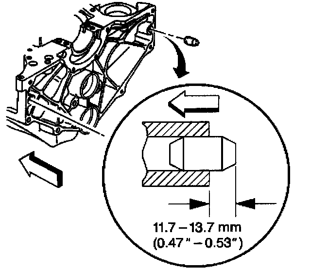 A properly installed front engine oil gallery plug must be installed slightly below flush with the front face of the engine block.