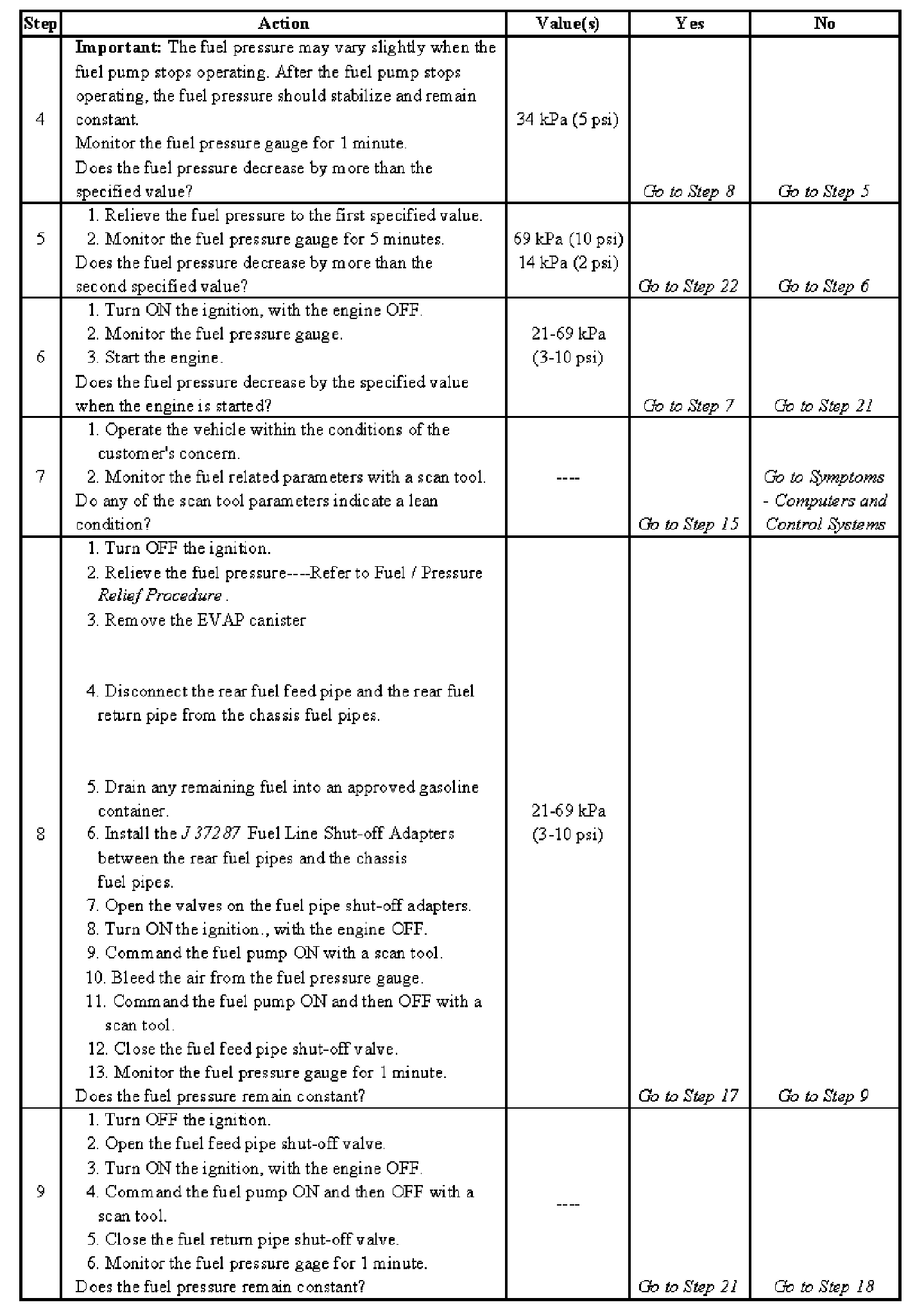 Fuel System Diagnosis - Steps 4-9: