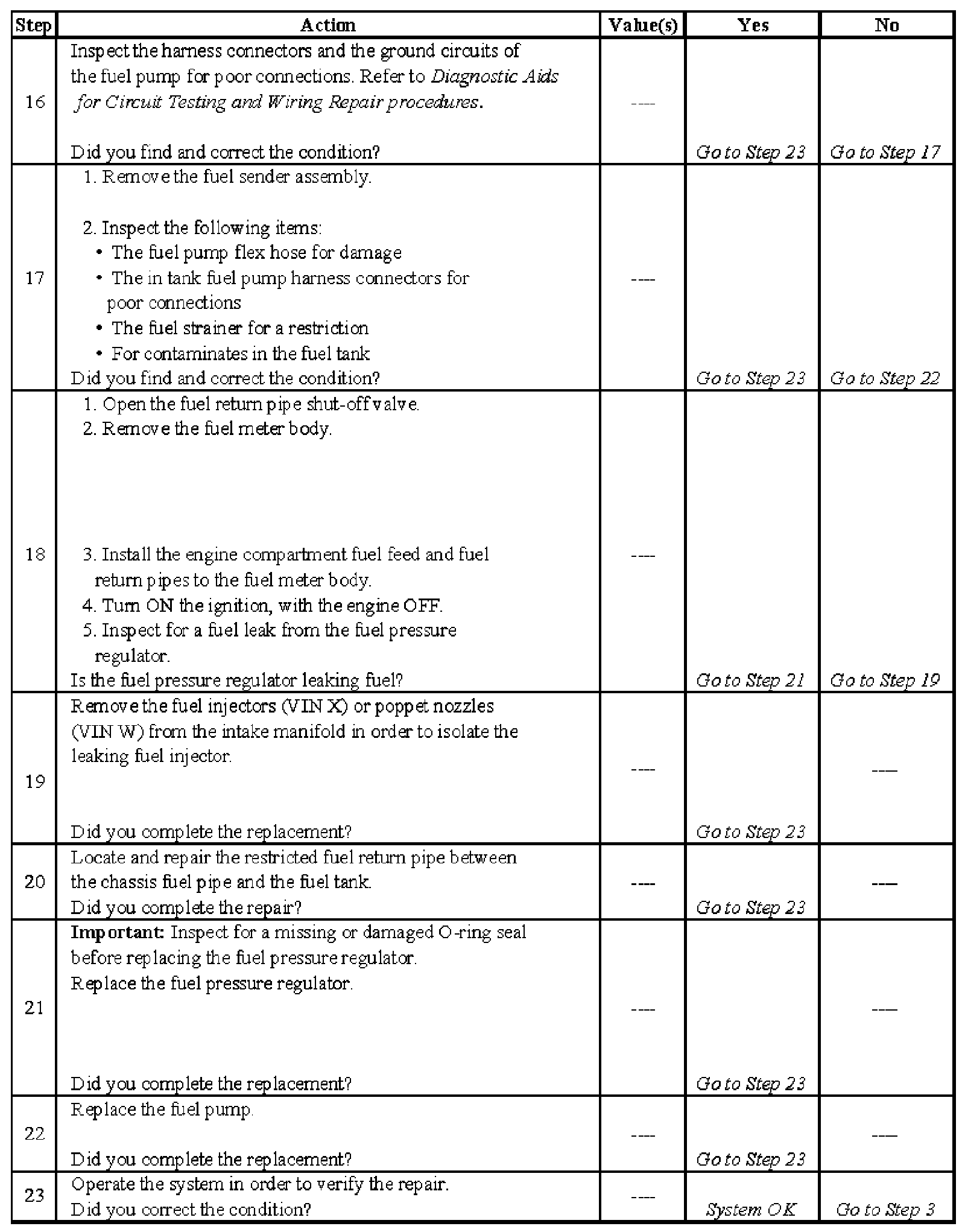 Fuel System Diagnosis - Steps 16-23: