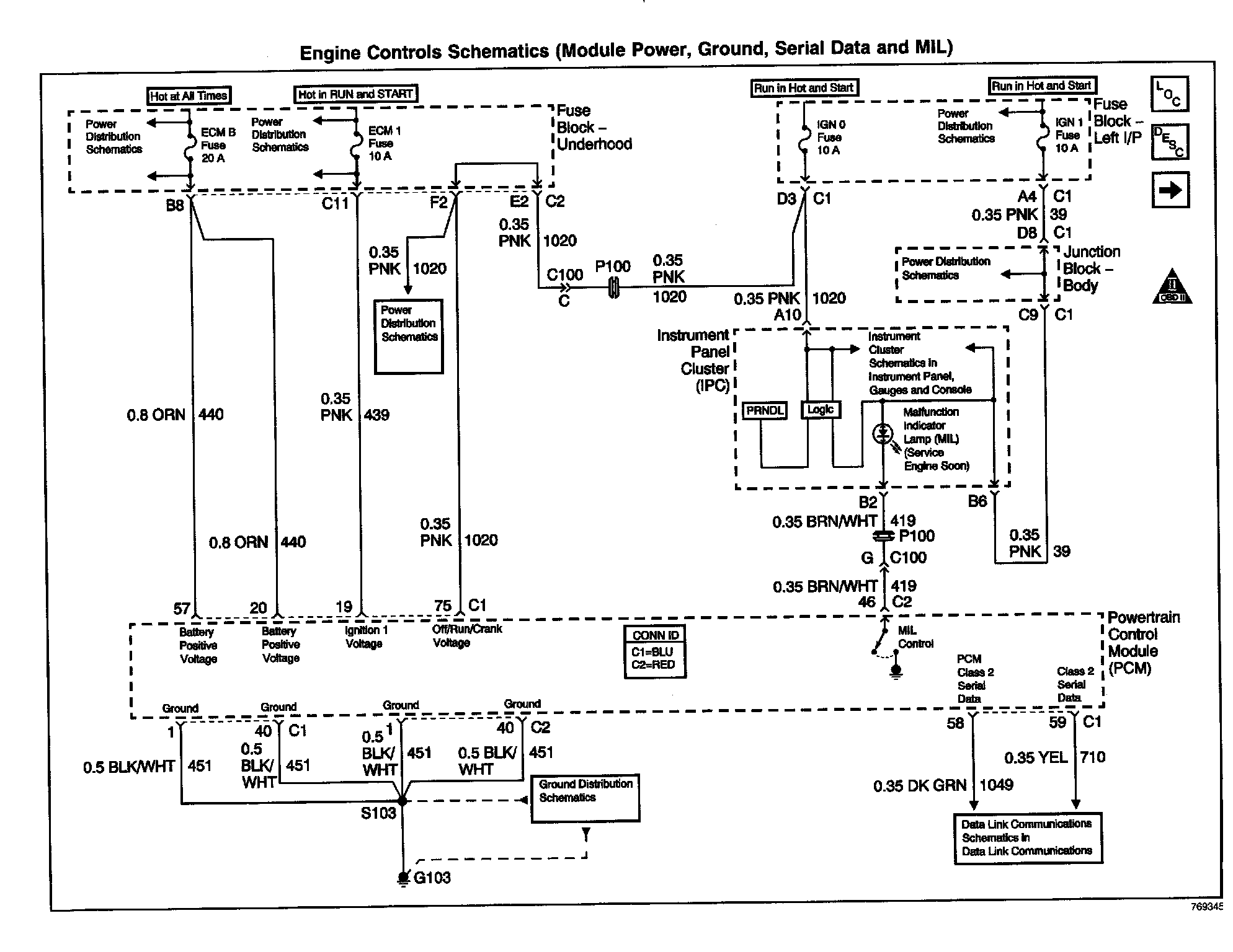 Engine Control Schematics: Module Power, Ground, Serial Data And MIL:
