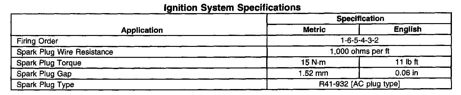 Ignition System Specifications: