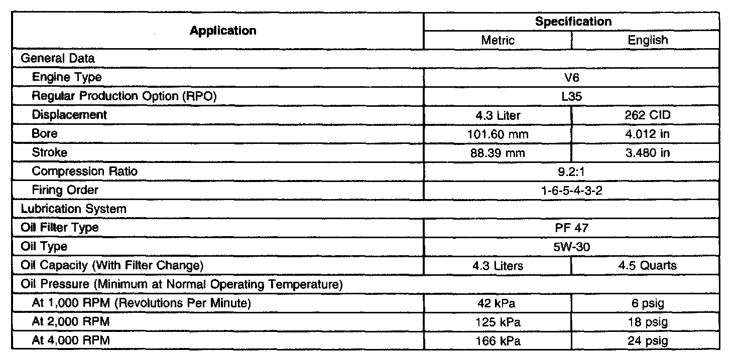 General Engine Specifications