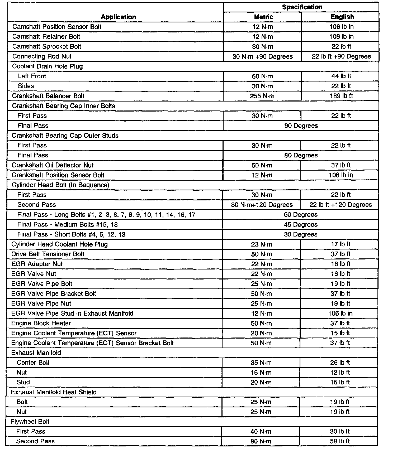 Fastener Tightening SpecificationsGeneral