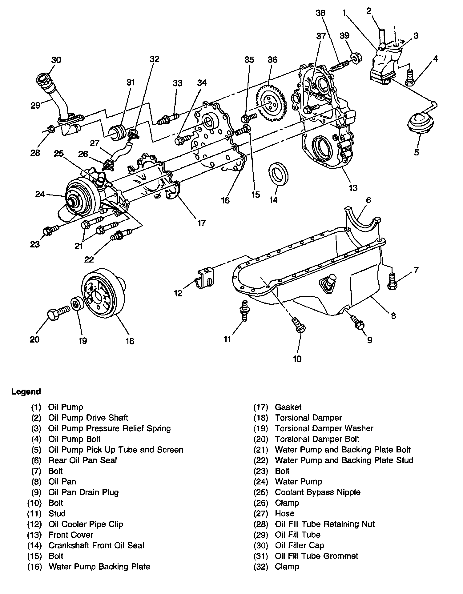Front Cover, Oil Pan, and Components