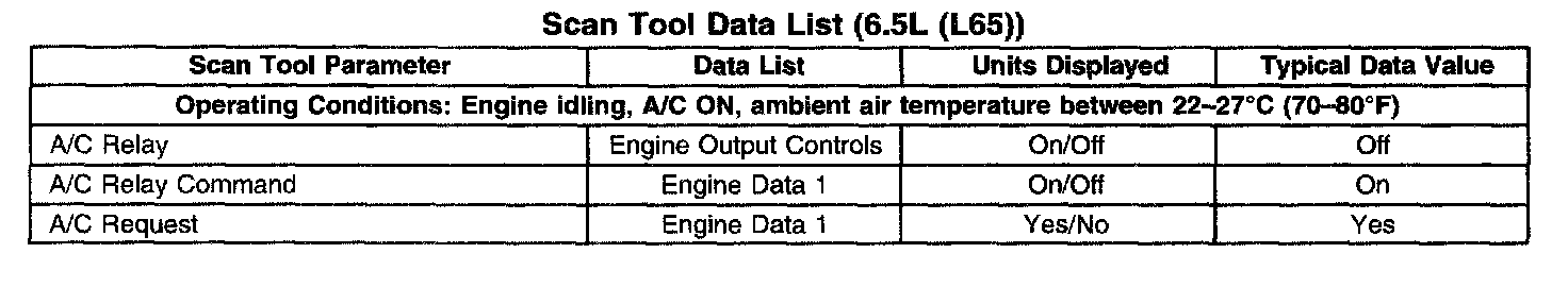 The scan tool data values were taken from a known good vehicle under the following conditions: