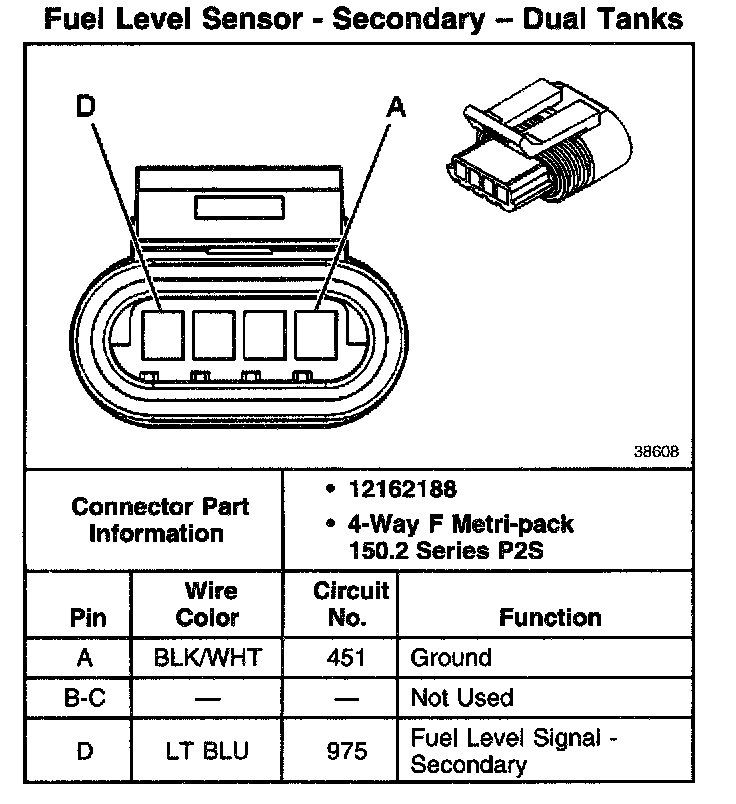 Fuel Level Sensor - Secondary - Dual Tanks: