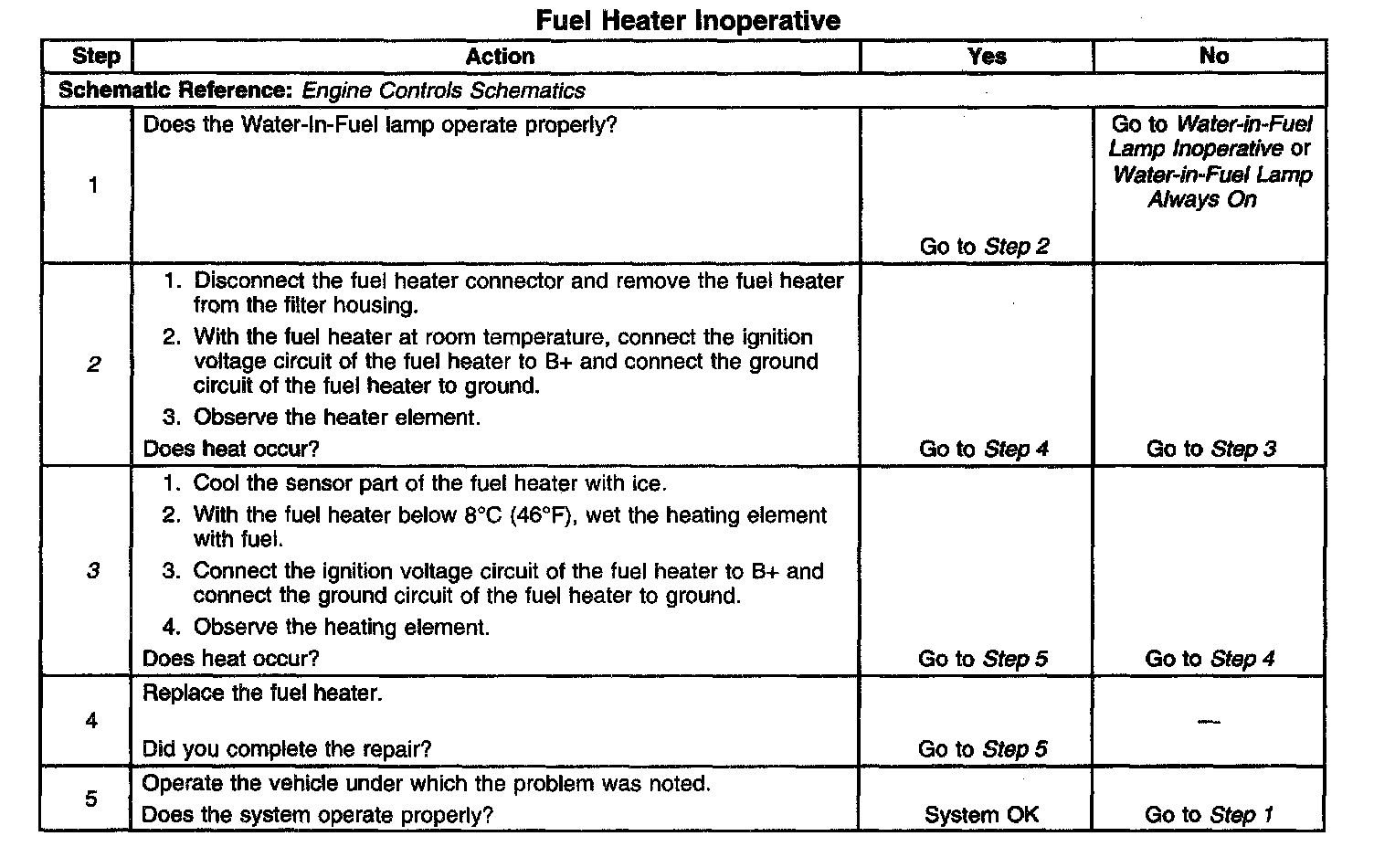 The fuel heater is operated by a built-in thermostatic switch. The thermostatic switch completes the circuit for the fuel heater element when senses a temperature below 8°C (46°F).