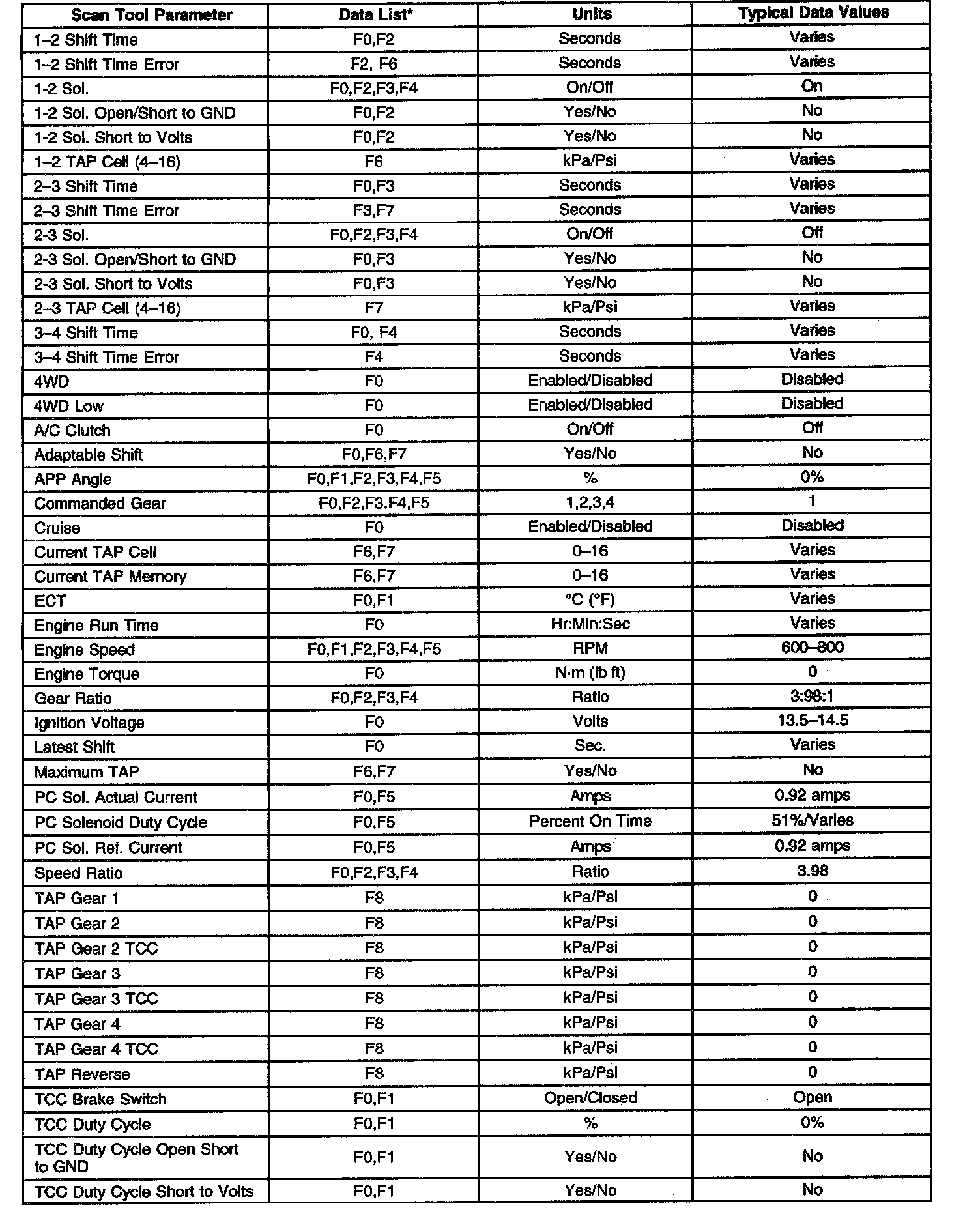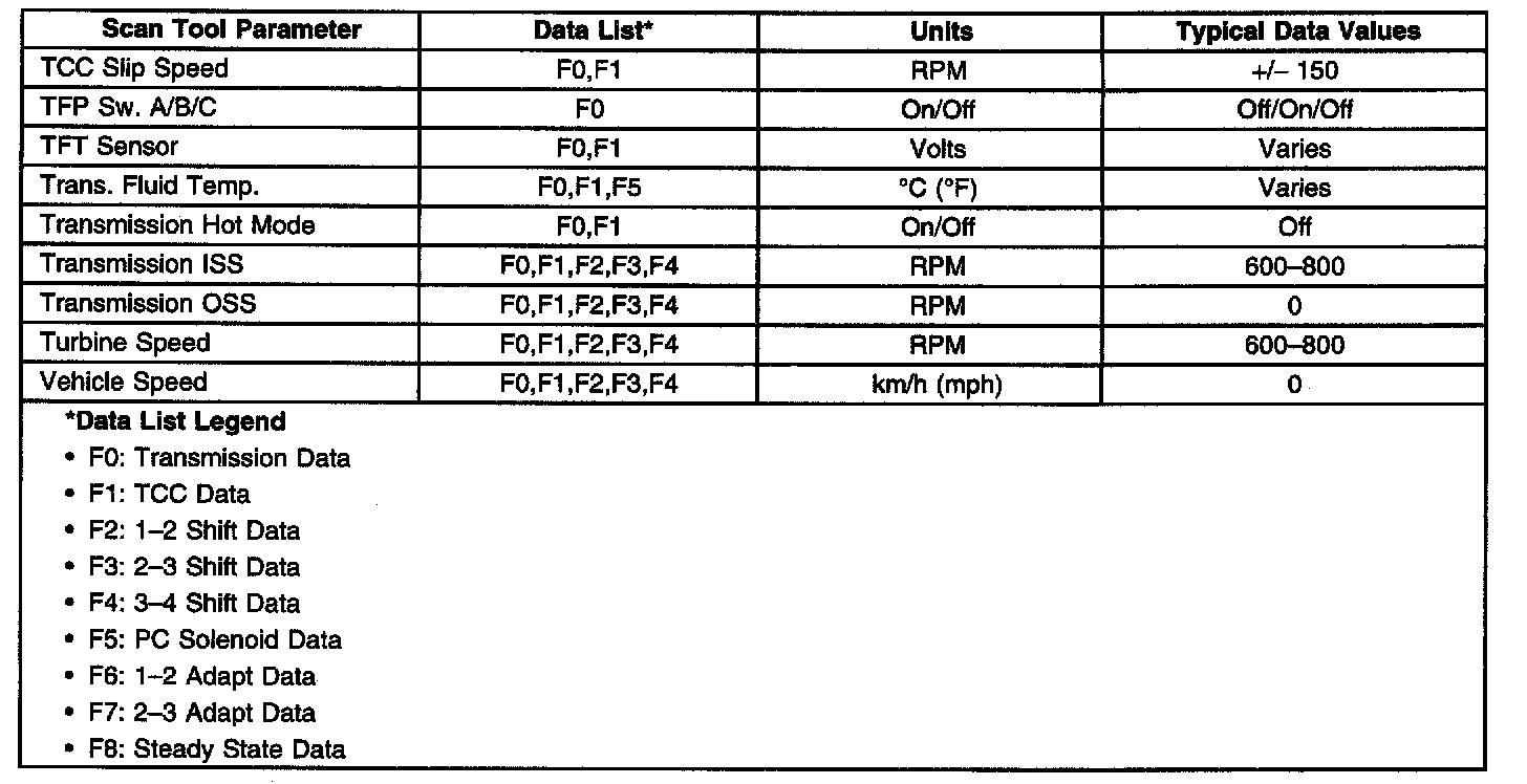 Transmission Scan Tool Data List (Diesel)Use the scan tool data values under the following conditions: