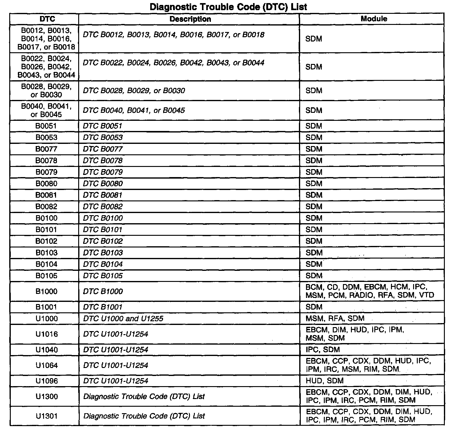 A L L Diagnostic Trouble Codes ( DTC )