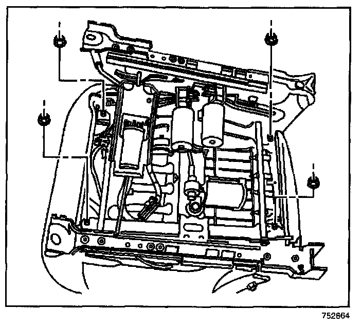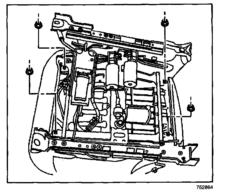 4. Install the 4 nuts that secure the seat pan to the power seat adjuster frame.