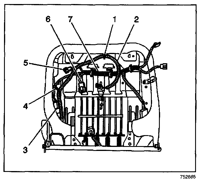 9. Connect the black electrical connector (6) to the seat back harness.