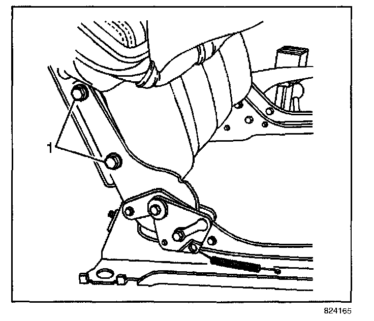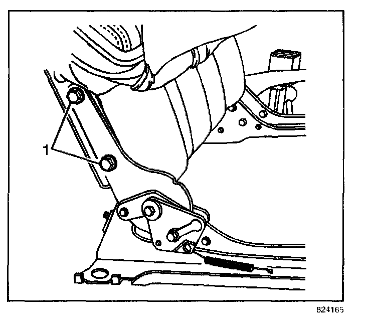 1. Install the two rear seat back mounting bolts (1) securing the inner riser assembly to the seat back frame.