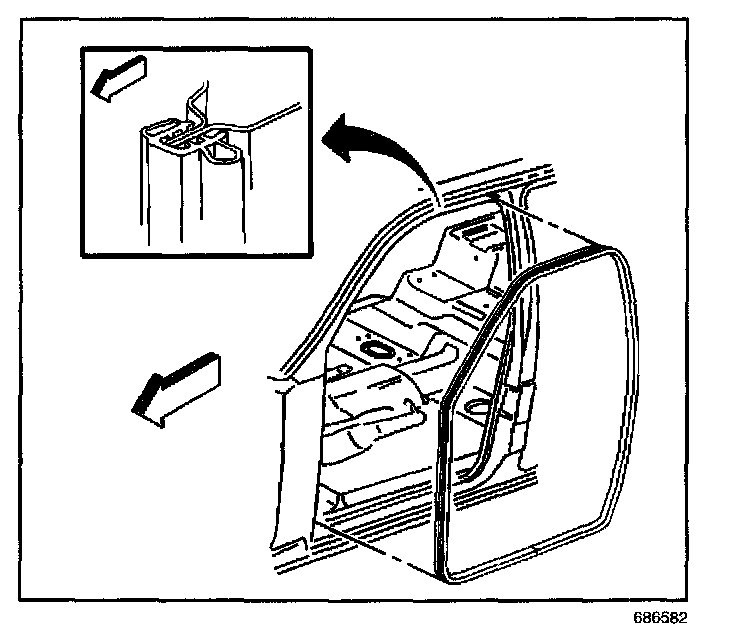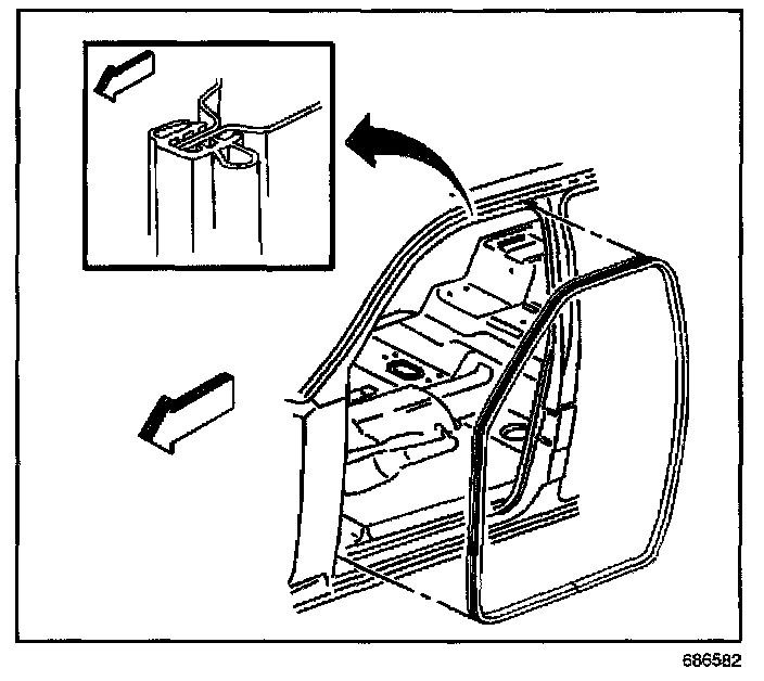 3. Install the weatherstrip to the pinch-weld flange. Ensure that the weatherstrip is fully seated.