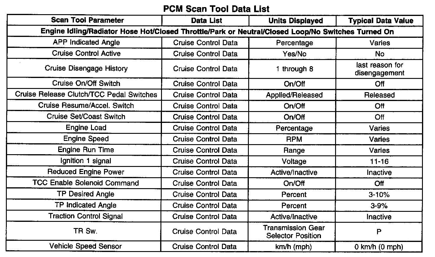 Scan Tool Data List - Powertrain Control Module (PCM)