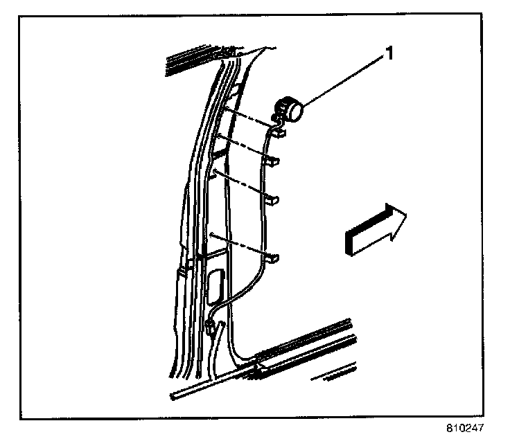 4. Remove the inside air temperature sensor assembly (1) from the B pillar.