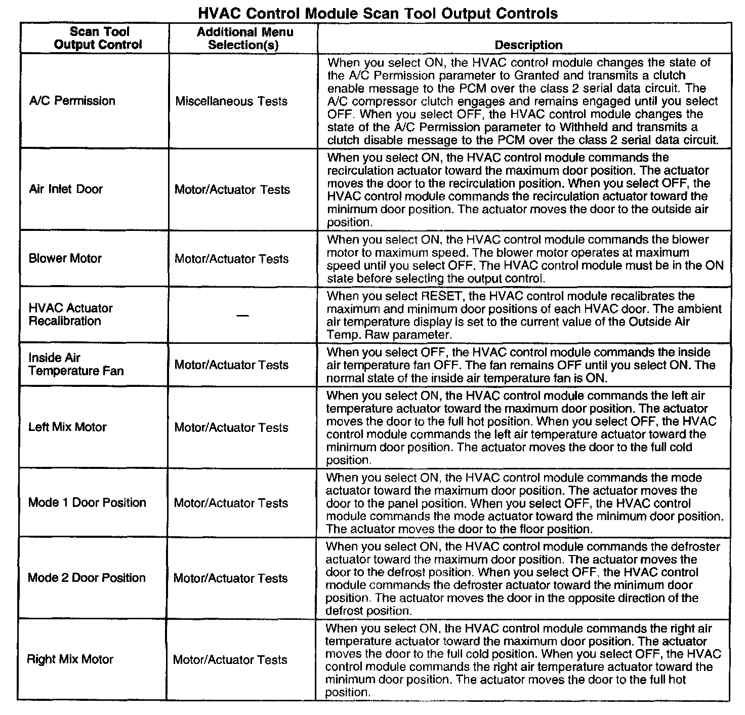 HVAC Control Module Scan Tool Output Controls: