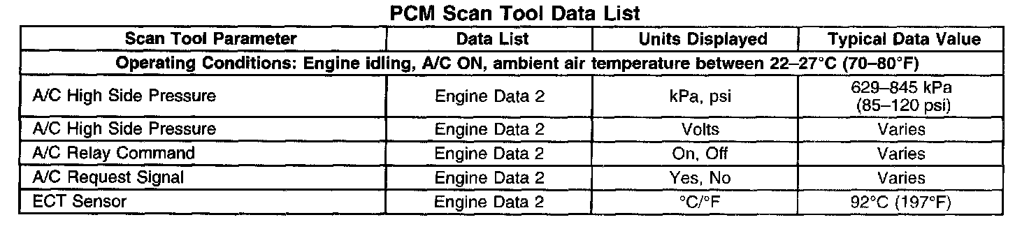 Scan Tool Data List - Powertrain Control Module (PCM)