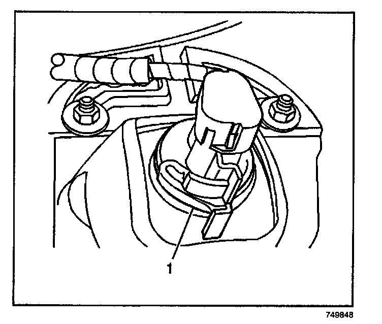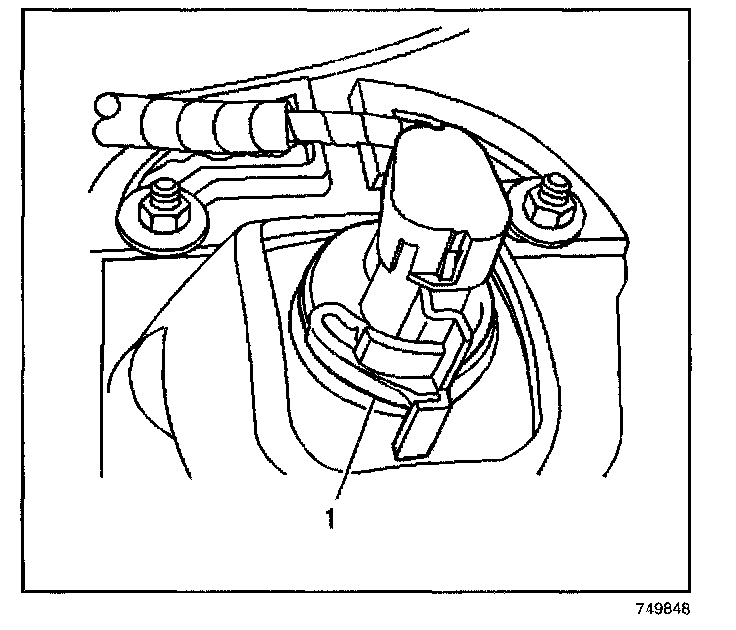 1. Push the retaining tab (1) inward and rotate the socket counterclockwise.