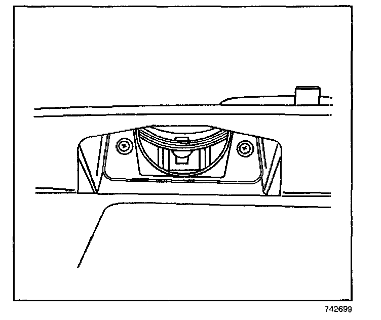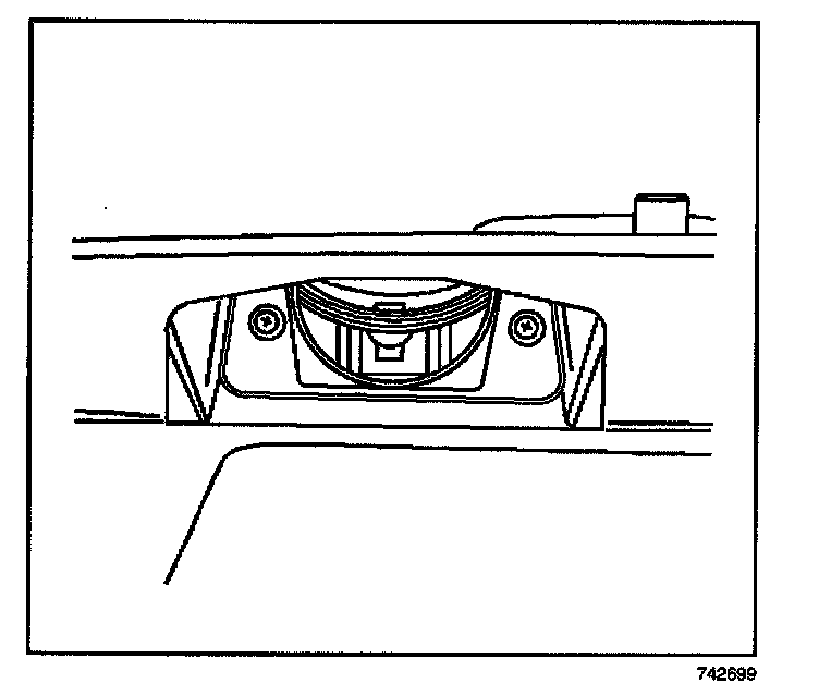 1. Remove the 2 screws that retain the license lamp lens to the liftgate.