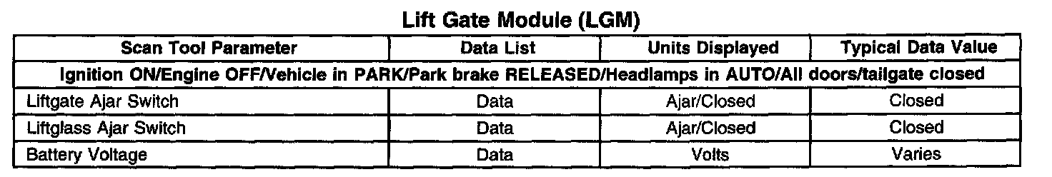 Scan Tool Data List - Lift Gate Module (LGM)