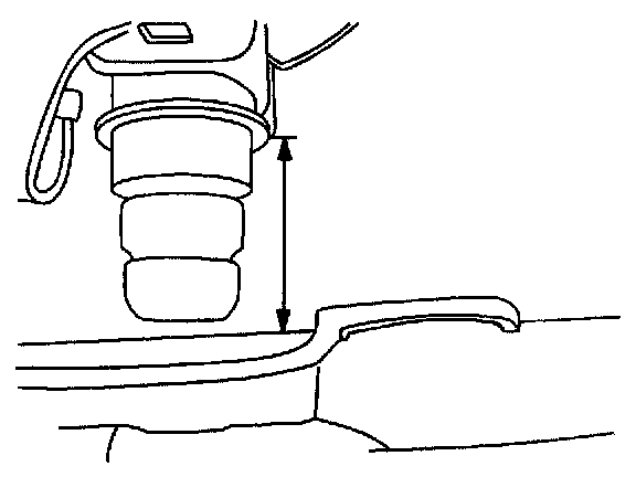The D height measurement determines the proper ride height for the rear end of the vehicle. There is no adjustment procedure. Repair may require replacement of suspension components.