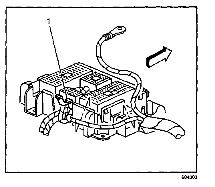 12. Disconnect the body wiring harness connector (1) from the junction block.