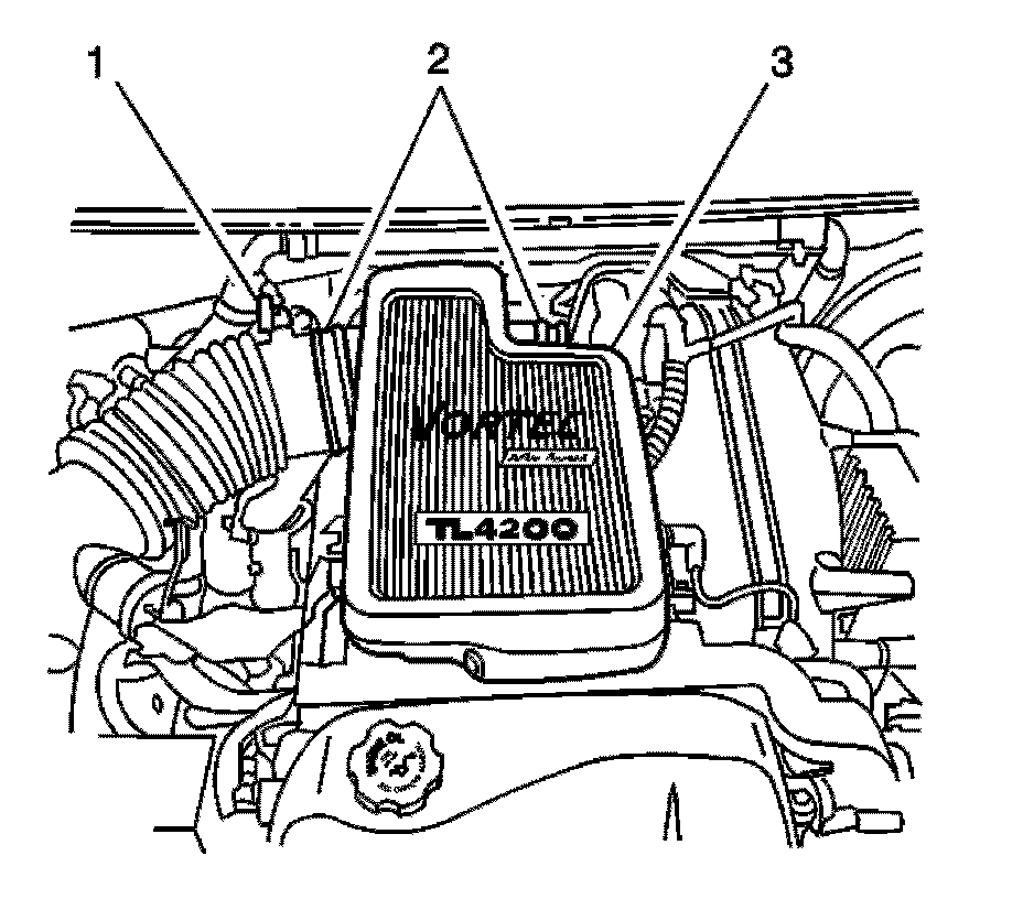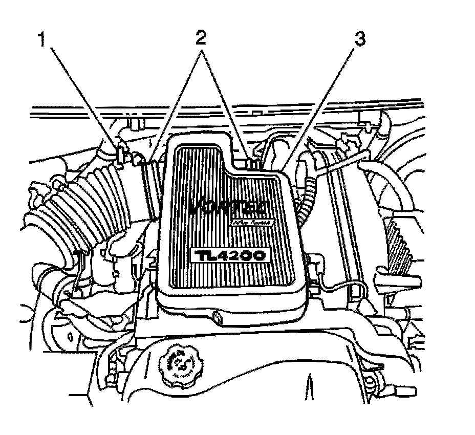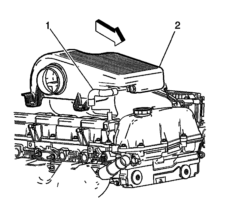 8. Disconnect the crankcase clean air hose from the air cleaner outlet resonator (2).