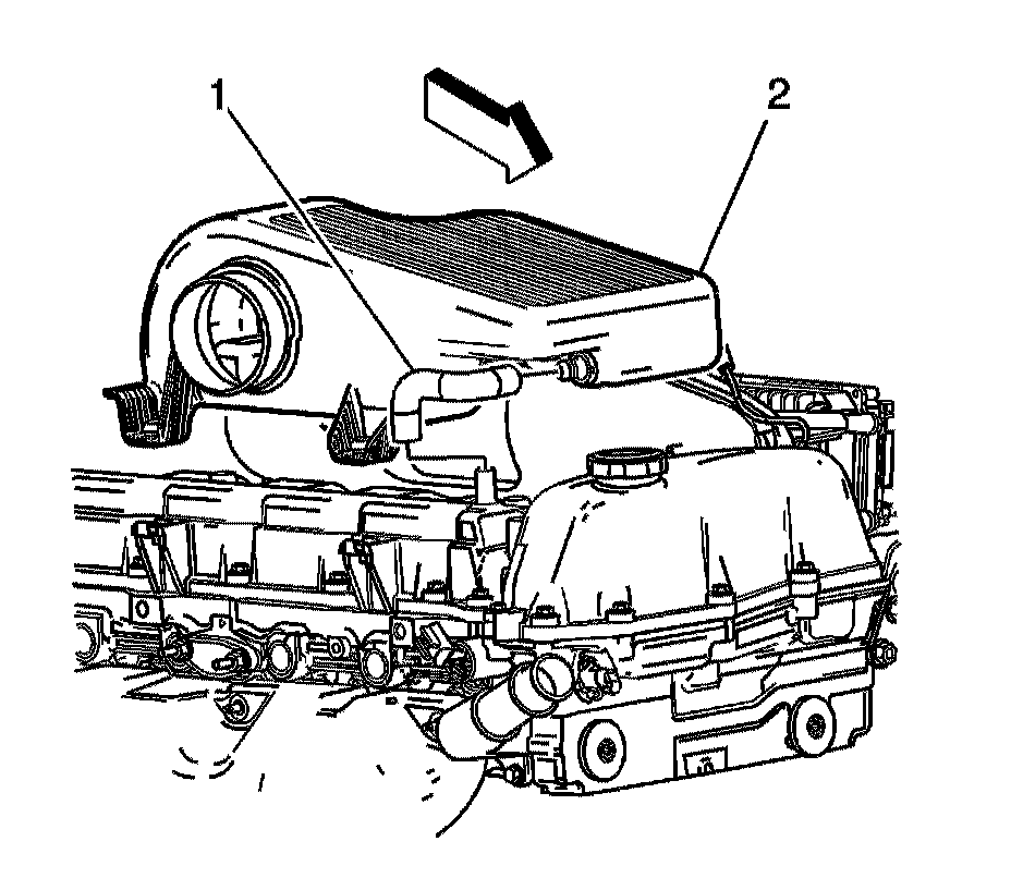 6. Lift up the front of the air cleaner outlet resonator (2).