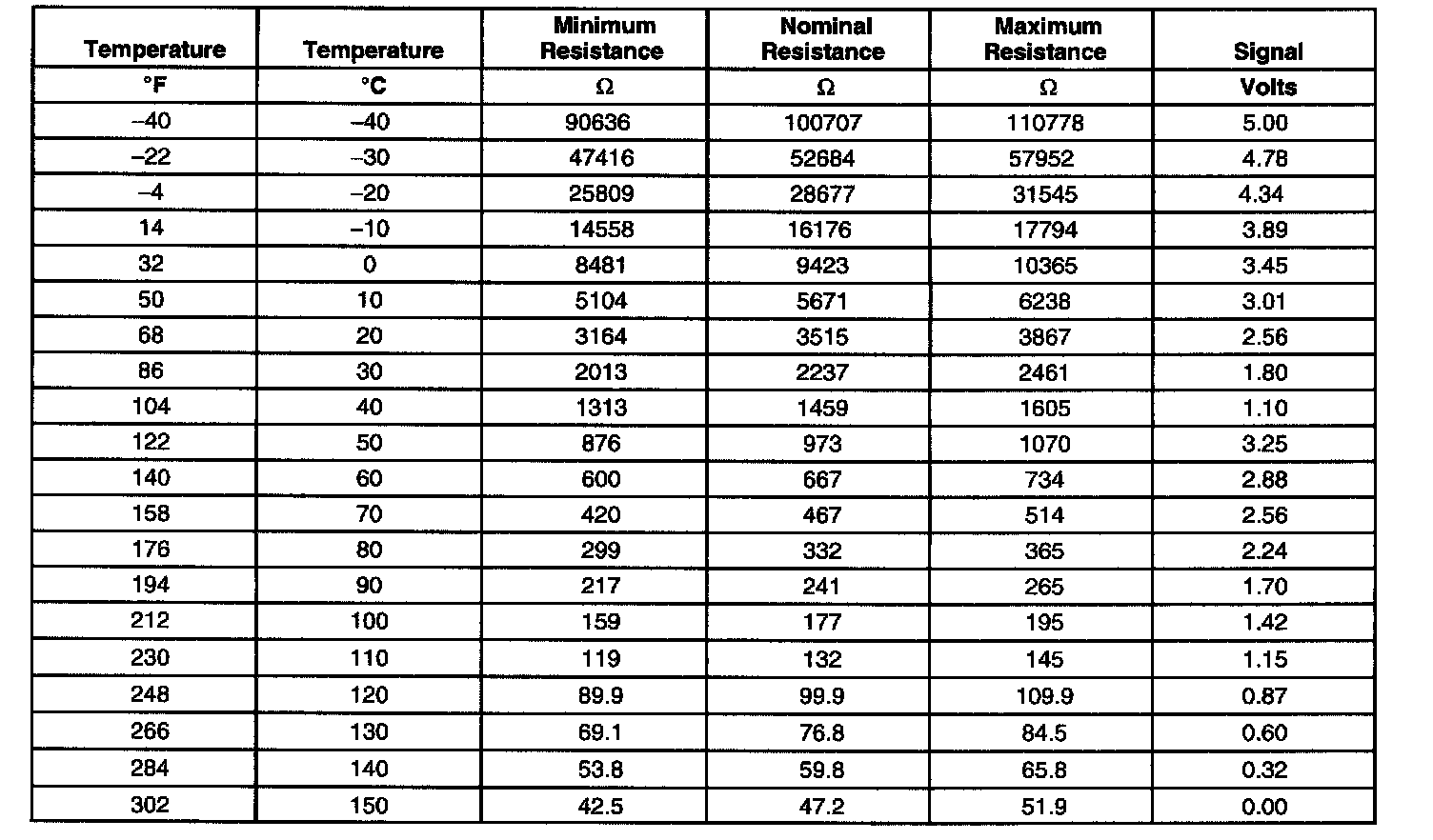Transmission Fluid Temperature (TFT) Sensor Specifications