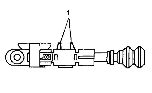 7. Carefully squeeze the locking tabs (1) together to disengage the primary lock.