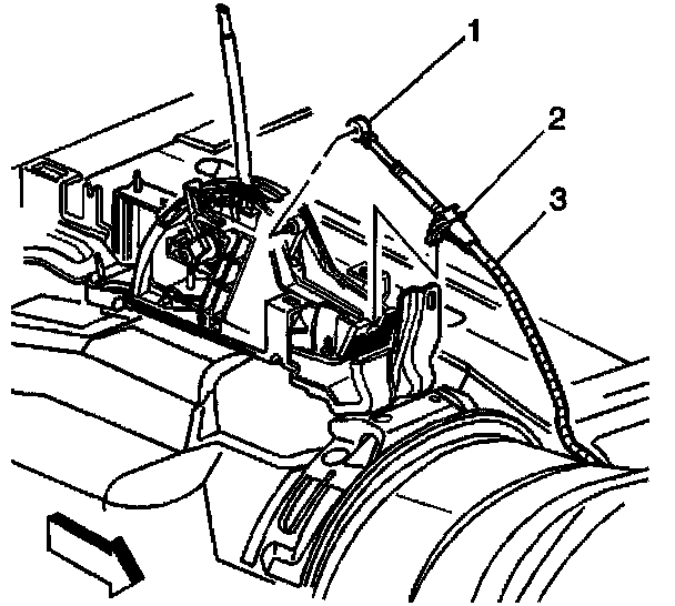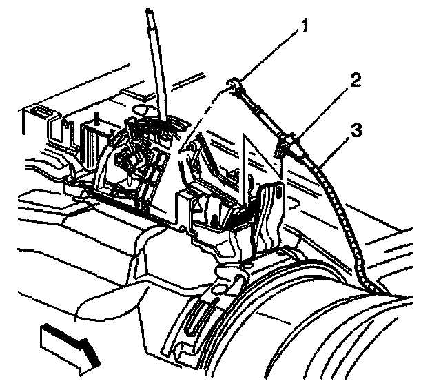 14. Remove the range selector cable (3) from the vehicle.