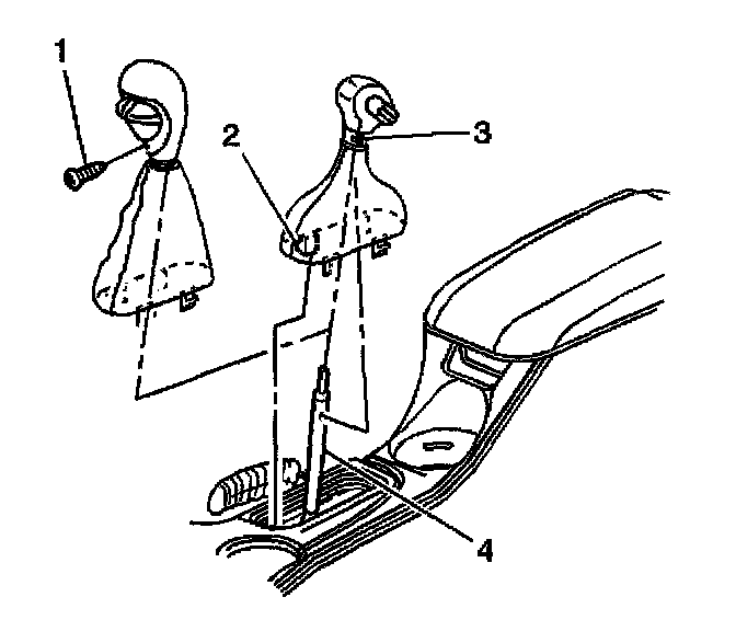 1. Install the knob and boot assembly onto the transmission control (4).