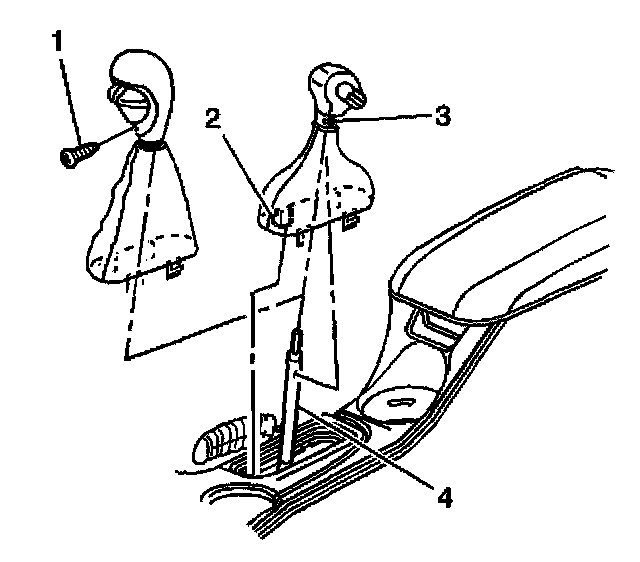 4. Pull up to remove the knob and boot assembly from the transmission control (4).
