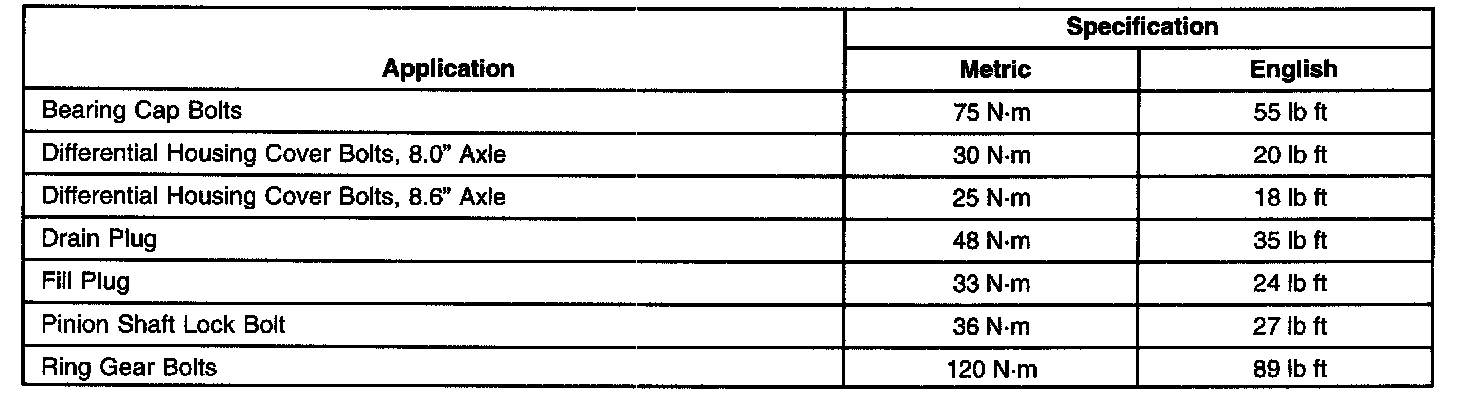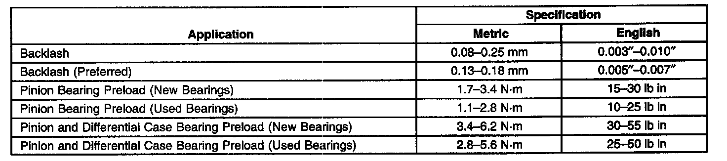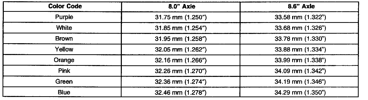 8.0, 8.6 Inch Axle Differential Adjustment Shims Specifications