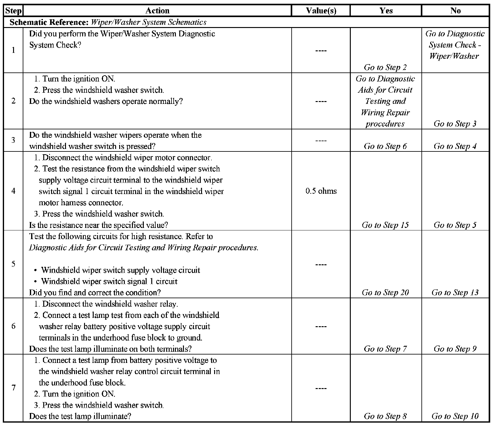 Washers Inoperative - Steps 1-7: