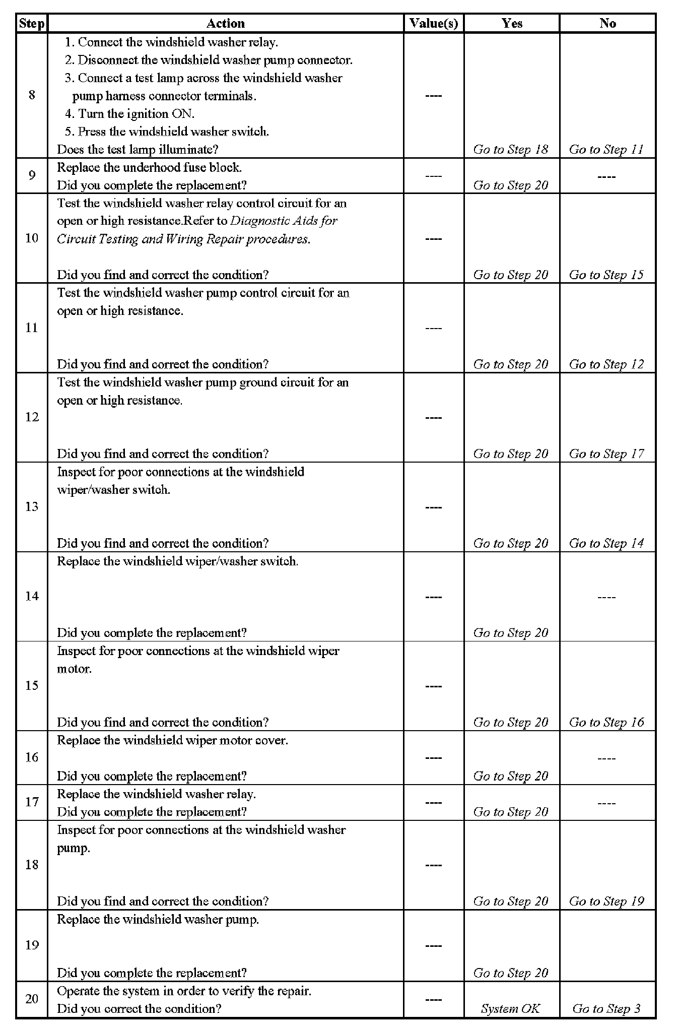 Washers Inoperative - Steps 8-20: