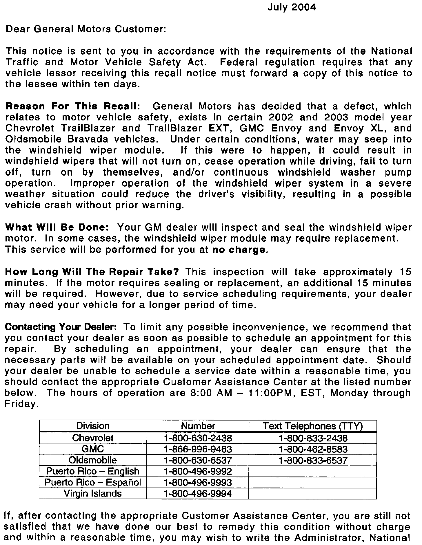 Recall - Windshield Wiper Defect