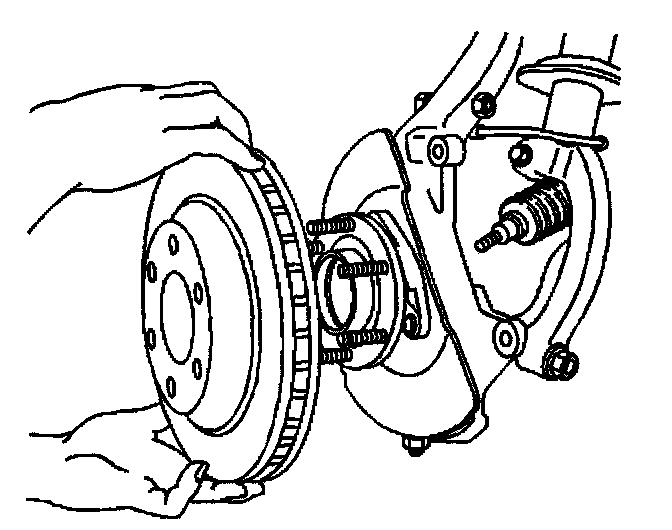 Important: if the brake rotor is not going to be replaced but just removed from the front hub, mark the relationship of the brake rotor and a wheel stud.