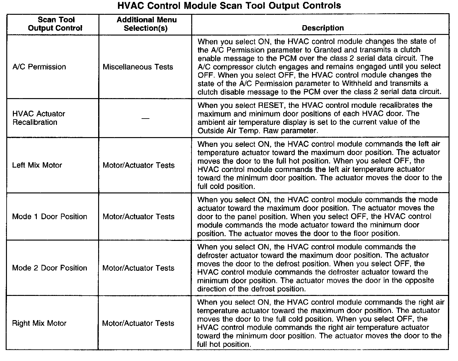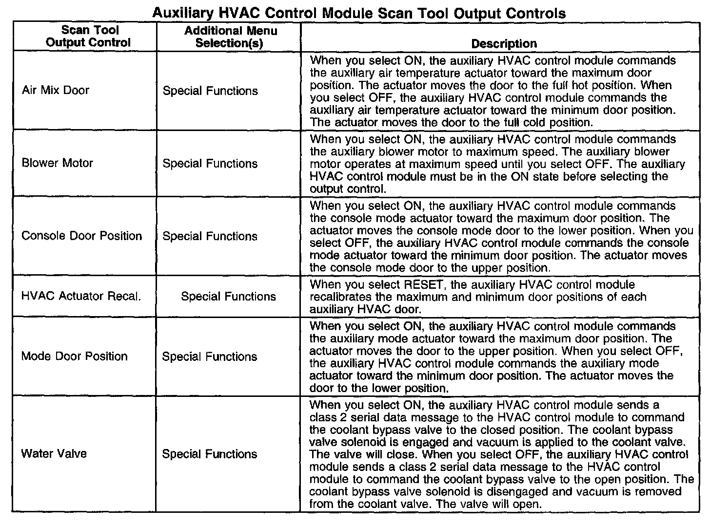 Auxiliary HVAC Control Module Scan Tool Output Controls: