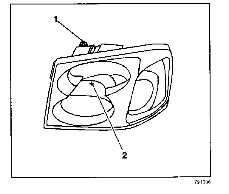 7. Measure from the floor to the reference mark on the headlamp lens (2).