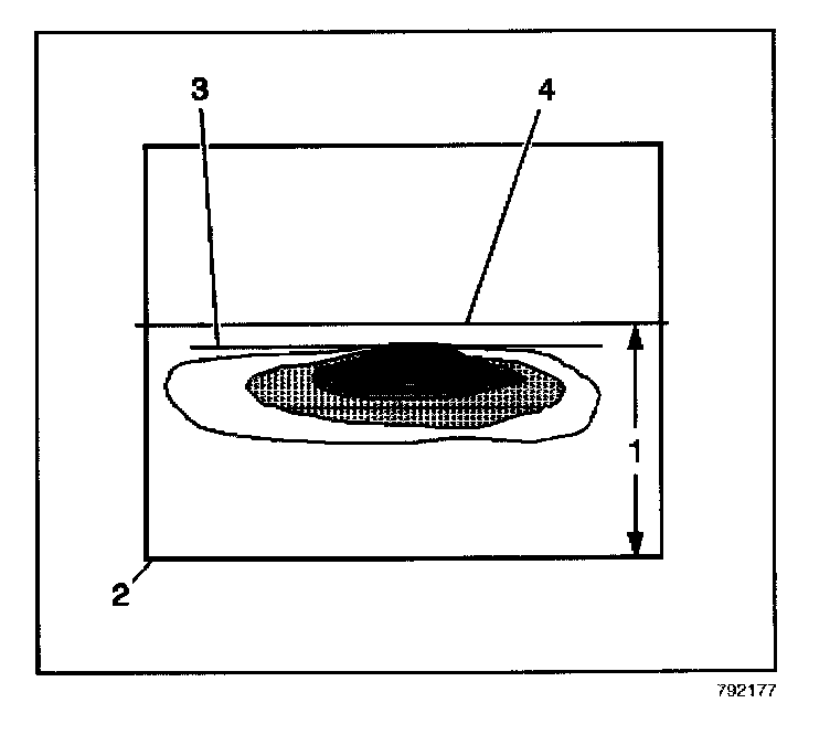 - The edge of the headlamp pattern (3), must be 5 cm (2 in) below the reference mark (4), with the vehicle 7.62 m (25 ft) away.