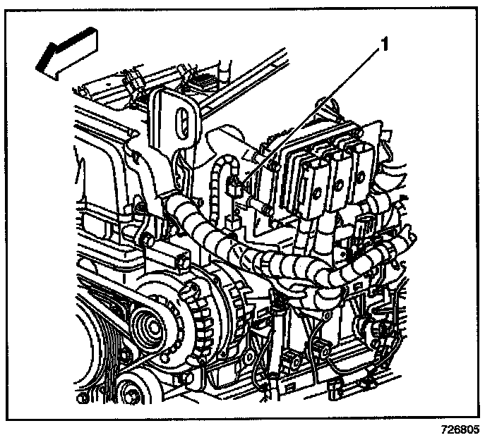 5. Remove the drive belt and the generator. Refer to Generator Replacement in Starting and Charging.