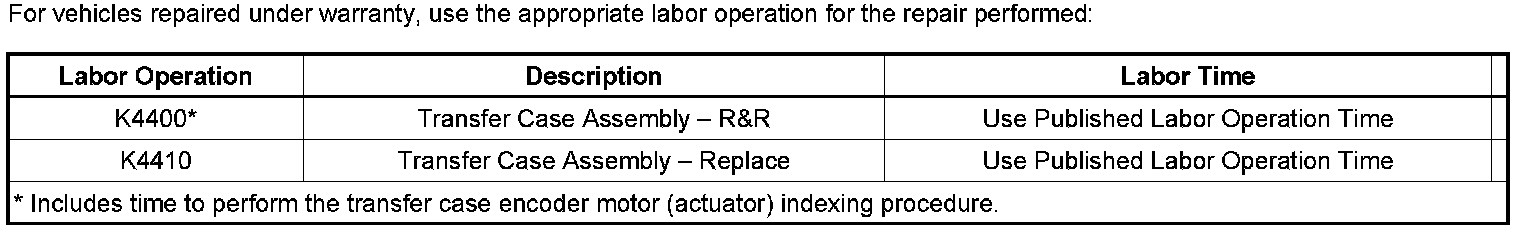 11. After installation, the transfer case will perform a learn procedure upon a requested MODE change.