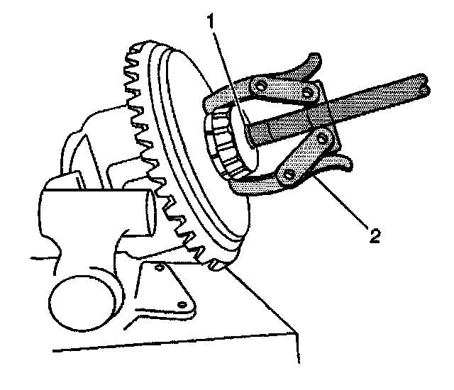 Notice: Do not pry the ring gear from the differential case. Prying the ring gear from the differential case may cause damage to the ring gear and/or the differential case.