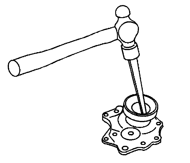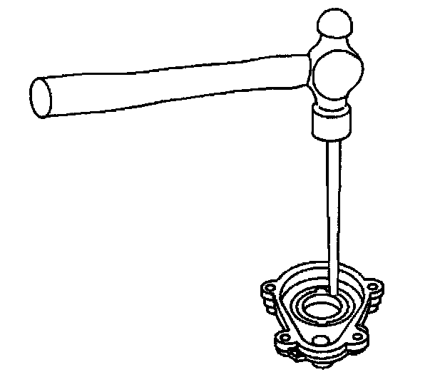13. Remove the outer bearing from the outer intermediate shaft bearing case half using a hammer and a brass drift.