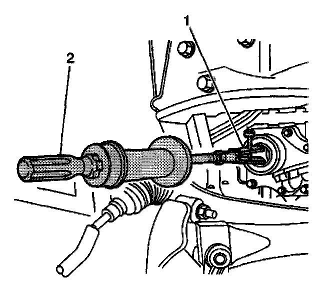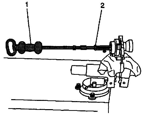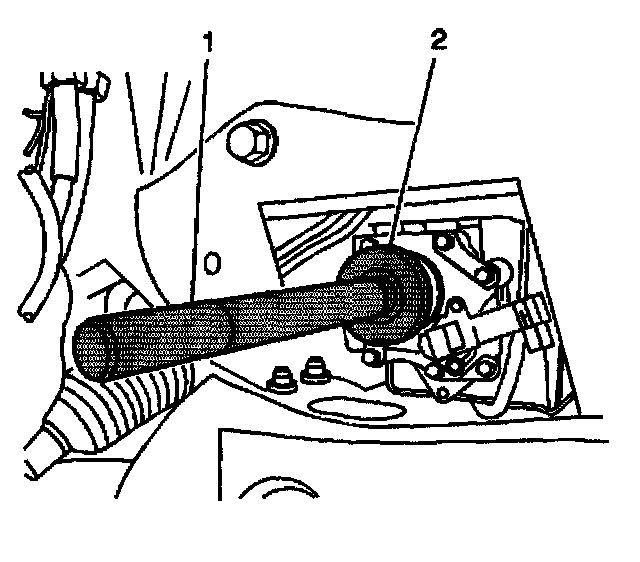 3. Install the J29369-2 (1) and the J 6125-B (2) into the outboard, wheel drive shaft side, oil seal as shown.