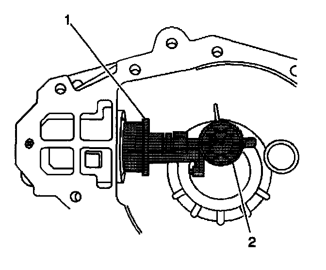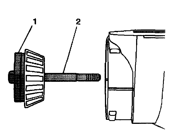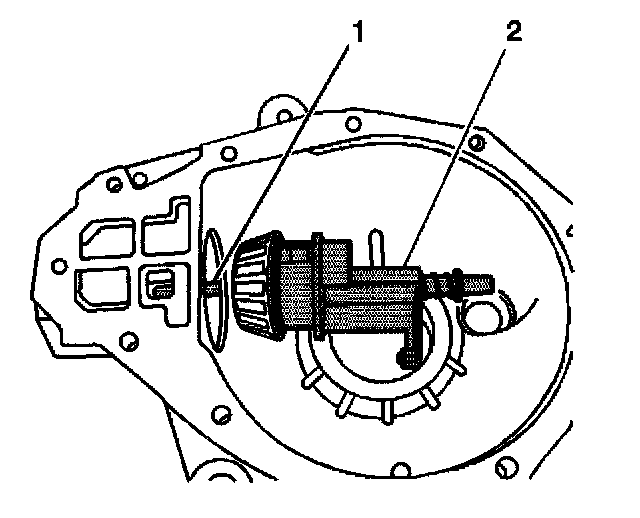 2. Install the J 33838-2 (1) and the bolt (2) to the outer pinion bearing.
