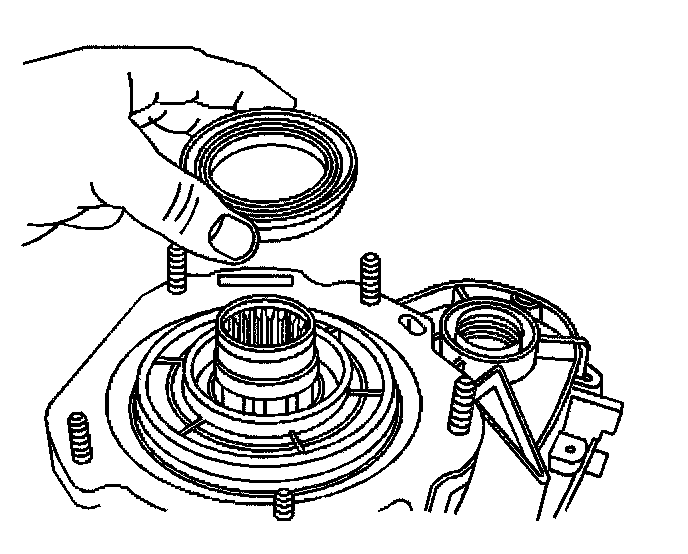 38. While pushing down on the clutch apply plate, remove the clutch pressure plate bearing retaining ring.
