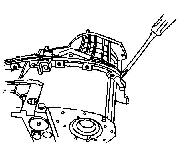 14. Using the J 45358, shear the sealer securing the front and rear case half together.